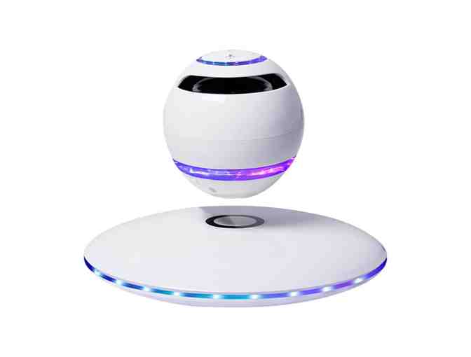 Cool levitation bluetooth speaker with hi-fi sound, elegant design and easy to use. High-tech wireless sytem, power conserving, low power consumption, high quality music effect transmission, enables you to enjoy acoustic music anywhere. Connects various bluetooth devices wirelessly, including computer, ipad, cell phone, etc. Revolves 360 degrees levitating in the air with 15mm above the base and colorful light flashing. Built-in rechargable battery for a playtime of 8 hours with medium sound.