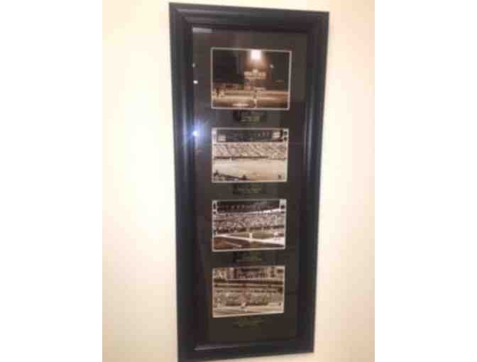 Cincinnati Reds photo collage of the three stadiums. Includes Last Pitch from Crosley Field, First and Last Pitch from Riverfront Stadium and First Pitch at Great American Ballpark.