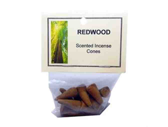 This lot contains: 12 packs of Redwood Incense cones, each pack has approximately 15 cones.