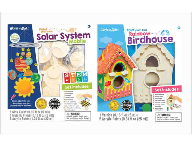 2. Solar System set includes: planets, hanger, sun, cord, labels, paint, tubs, glow in the dark paint, brushes.