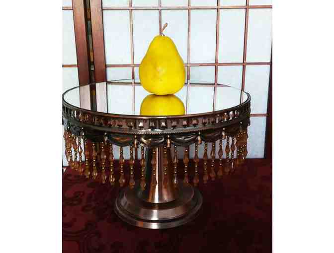Kitschy Mirrored Cake Stand with dangle bead detailing
