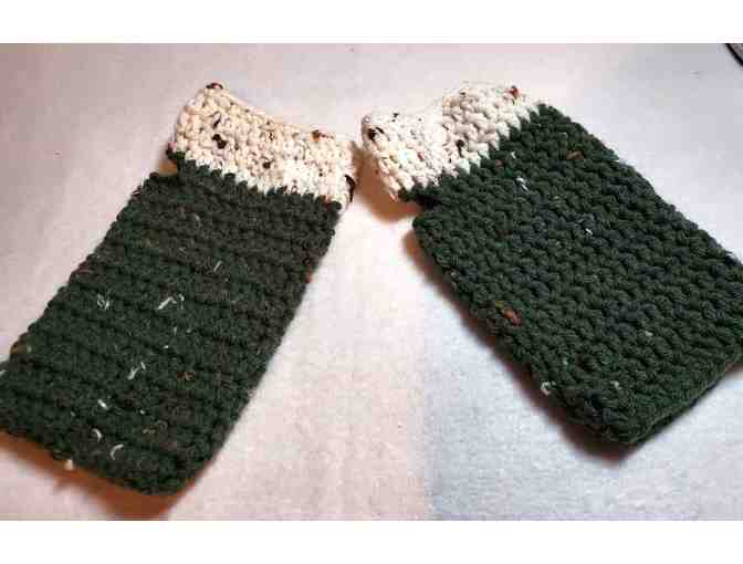 Super comfy fingerless gloves, also known as pulse warmers. People living in the colder mountainous areas of Europe have used them for centuries. By warming the arteries in your wrists, fingerless gloves or pulse warmers, assist in keeping your whole body warmer. Hand crocheted by a volunteer for CARA (crafters & artisans for rescued animals). This group of talented people assist all types of animal rescues with crafted items tailored directly to their needs.