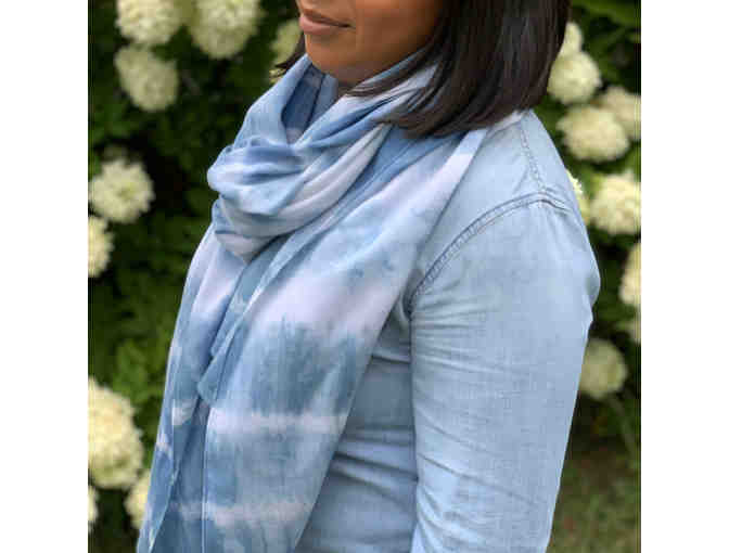 This soft and light organic cotton scarf was locally dyed with natural pigments in our studio in MA. Each item will vary slightly, as they are handmade in small batches.