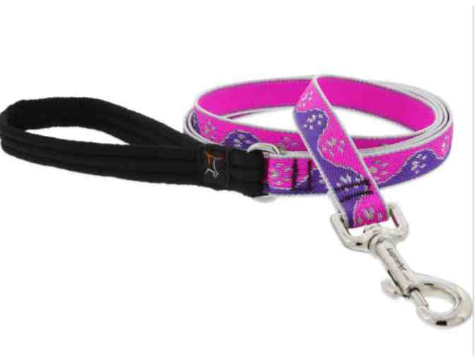 Lupine Pet Reflective Dog Leash - Pink/Purple Paws
