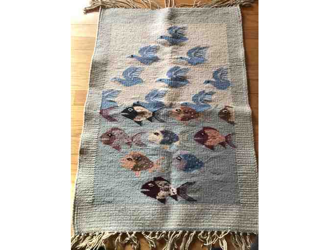 Mexican Fish and Bird Woven Rug / Wall Hanging