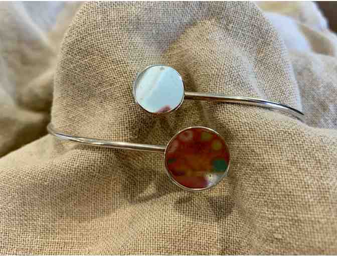 Vintage sterling silver double disc bracelet from celebrated Baltimore jewelry designer Betty Cooke.