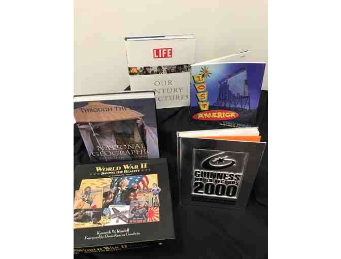 World Perspecives in this 5 Book gently used Collection: Lost America, Guinness World Records 2000, Life Magazine-Our Century, Thru the Lens by National Geographic, and World War II - Saving the Reality.