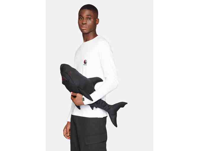 Our Wool Shark Mascot is part of our iconic off-cut animal series, crafted by hand in the RæBURN Lab using the studio's fine Hainsworth wool off-cuts. A playful companion that measures 70cm x 24cm. Whilst our Off-Cut Animal Mascots are traditionally accompanied by community mascot-making workshops, and all proceeds donated directly to WWF UK, this one is expertly made by our talented seamstress team.