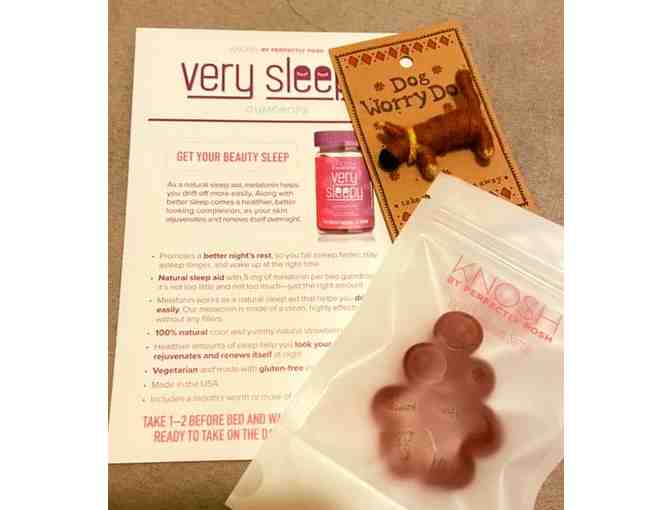Your own personal "worry dog" is accompanied by 8 Sweet strawberry gumdrops that help you get a great nightÂ's rest with melatonin while renewing your skin overnight so you look refreshed and feel ready to take on the day.