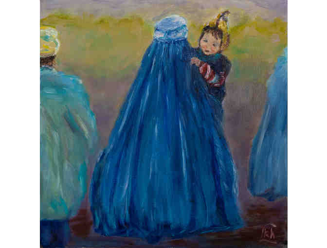 The Afghan chadri style of burqa is said to have been worn by Pashtun women since pre-Islamic times, and the blue is said to represent protection. More common traditional Afghan dresses are typically colorful mid-calf dresses over pants, decorated with intricate embroidery and tiny mirrors. Many of our new neighbors from Afghanistan brought these cherished dresses from home in their suitcases.