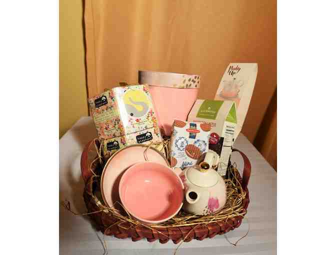 Pinkies up! Enjoy afternoon tea with this beautiful tea set. The basket includes: