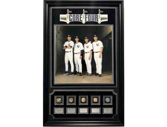 Framed Shadowbox Photograph of New York Yankees Derek Jeter, Andy Pettitte, Mariano Rivera, and Jorge Posada with Replica 5 World Series Rings