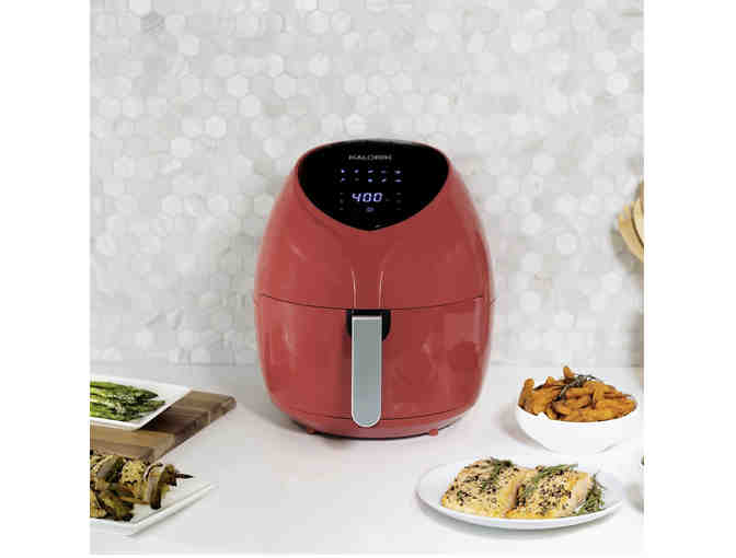 Enjoy delicious, healthy meals in minutes, while reducing fat and calories with the Kalorick 6.3 QT Digital Air Fryer. Featuring innovative Rapid Hot Air Technology, this high-performance digital air fryer cooks food in a fraction of the time, so no hungry appetite goes unsatisfied. Achieve the same crispy texture and tender flavorful interior of deep-fried food, without the guilt! This healthy cooking alternative requires little to no oil, allowing you to indulge in all your favorite fried foods with less fat and calories. The Kalorik 6.3 QT Digital Air Fryer features a digital control panel with 10 smart presets for foolproof results. Adjustable time and temperature allow for customized cooking. Non-slip feet and cool-touch housing and hands ensure safe operation. Meanwhile, the diswasher-safe trivet makes clean-up hassle-free.