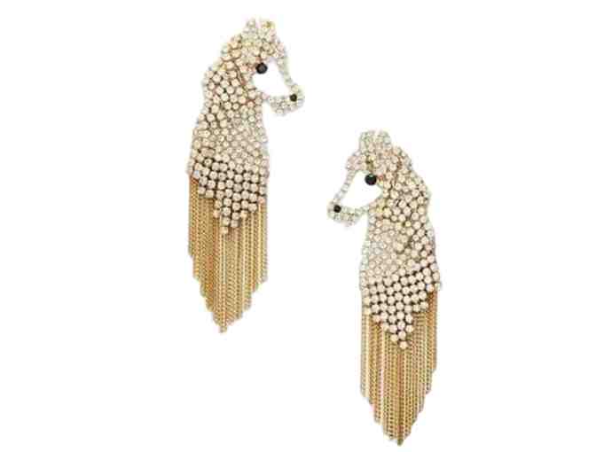 Outline horse silhouette covered with sparking cut glass crystals with fine golden chain mane and short top crystal studded upper mane that moves and flows like the real thing.