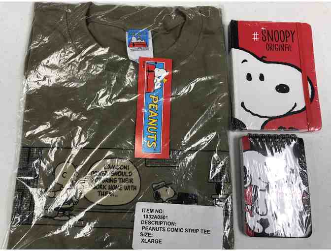 Peanuts XL Comic Strip Tee and Snoopy note pad and hand book
