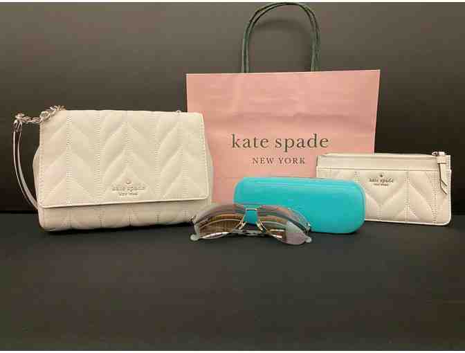 Kate Spade white quilted purse with matching wallet and aviator sunglasses. Donated by Valley Bank & Christine Curiale and Shawn Steinmuller.