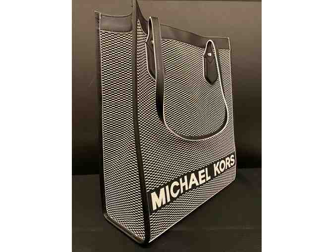 Michael Kors black and white tote. 15"x13"x5". Donated by Valley Bank & Christine Curiale and Shawn Steinmuller.