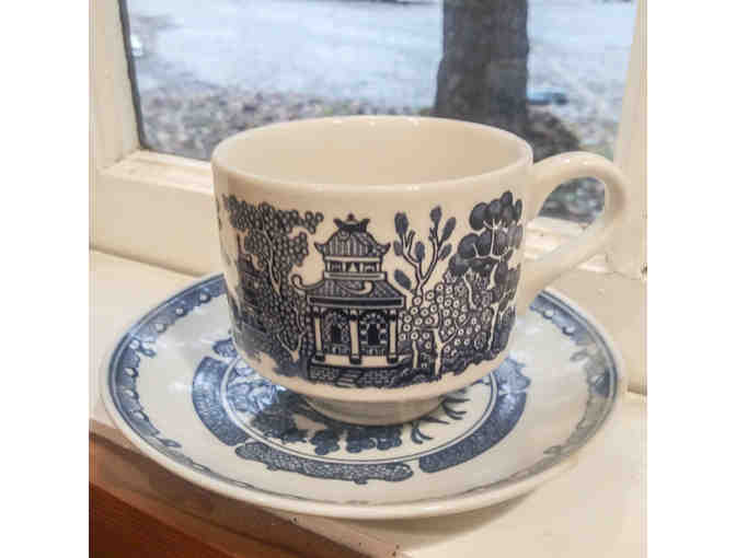 Chinese design, under the cup is imprinted "Churchill England" and under the saucer "made in China"