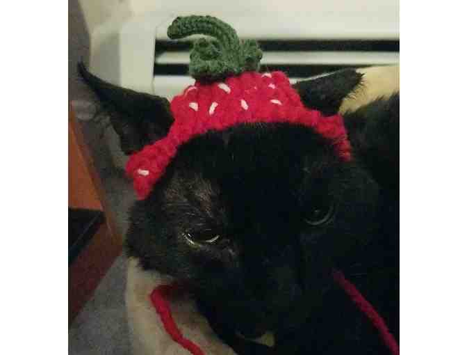 What could be sweeter than fresh strawberries? Your kitty in this one-of-a-kind strawberry hat of course!