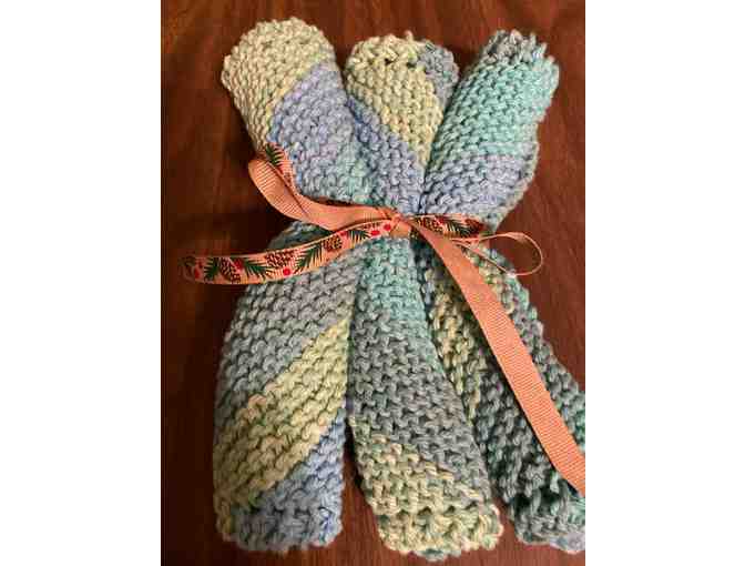 Set of 3 hand knitted dish cloths.