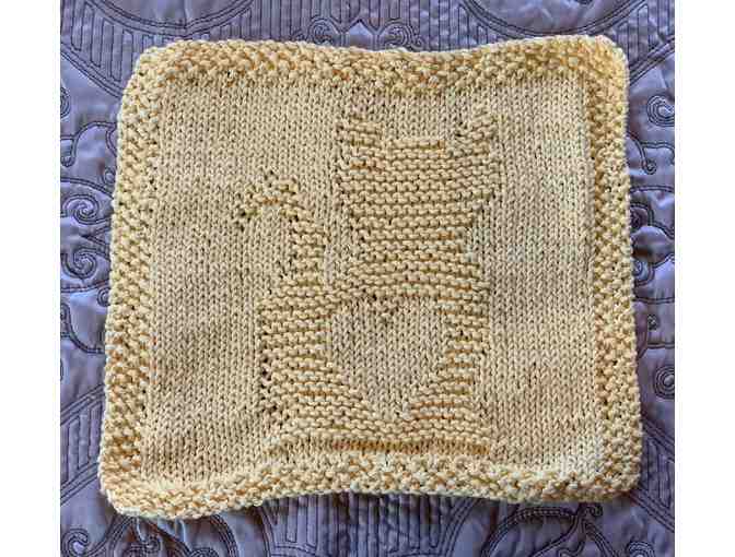 Hand-Knit Cat & Heart Washcloth - Yellow