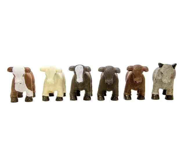 These toys from the Happy Toy Maker will hold up for generations to come. Set includes-- Cowboy, Black Angus cow, Black Angus calf, Sorrel horse, & Sorrel colt (1 of each)