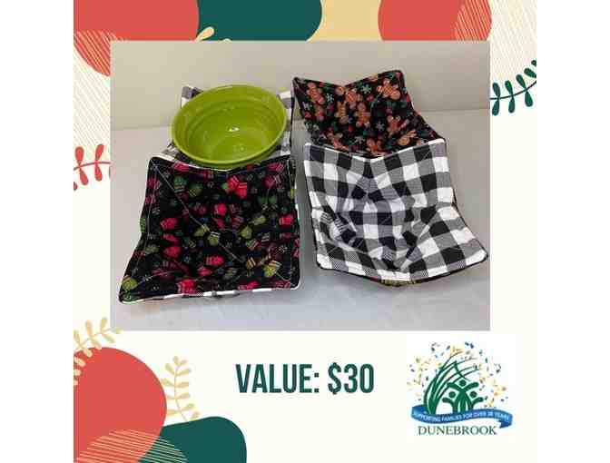 Nothing better when you can heat up your food in the microwave and not burn your hands or eat your food by keeping it warm with these festive bowl pot holders.
