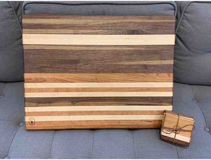 Handcrafted Hardwood Cutting Board and Set of Four Coasters