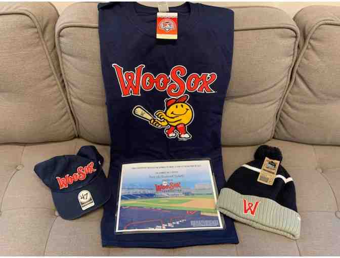 Come cheer on Massachusett's newest minor league team. The Pawtucket Red Sox have moved to Worcester, and we have a gift pack to cheer the WooSox on.  The gift pack includes a men's XL logo t-shirt, logo baseball cap, logo beanie hat, and a certificate valid for four reserved tickets to a game during the 2021 season. The perfect holiday gift for any baseball fan!