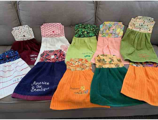 You are bidding on ten towels with an oven-door hanger made to display throughout the year for every holiday and season: Winter, Valentine's Day, St. Patrick's Day, Easter, Memorial Day, July 4th, Fall, Halloween, Thanksgiving, and Christmas.