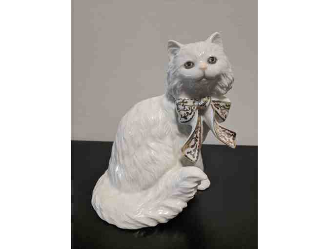 This pretty kitty was handcrafted in Mexico, and boasts a lovely white porcelain coat, as well as a bow full of gold accents around its neck. Official Lenox seal on base.