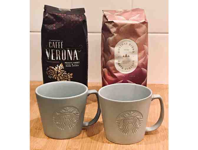 2 pounds of whole bean coffee and two branded white ceramic mugs to enjoy it in from Starbucks Sierra Madre!