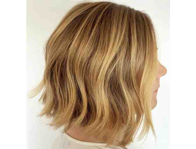 A $75 gift card for haircut & blow dry or to be used towards a service (e.g. color) at Little Mountain Salon in Sierra Madre. Gift box ready for giving, full-sized R+Co hair product included (shampoo 8.5oz, conditioner 8.5oz, shine, texture spray 6oz, R+Co bandana, and pink hair scrunchy).