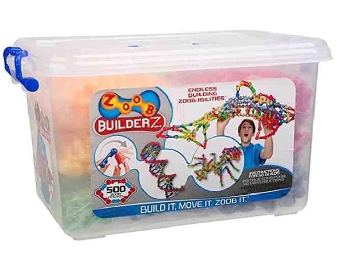 ZOOB BuilderZ 500-Piece Kit comes with six instruction guides to make 50 creations including a Megabite, the shark or a ZOOB purse (or create your own). ZOOB is not like any other building set - the pieces include gears, axles and joints that snap, click, and pop together! With rotating, spinning and extendable parts you can actually design a toy to play with, instead of just building something to look at. Create monsters or vehicles or monsters that turn into vehicles! The possibilities are as endless as your imagination! Recommended for children six years of age and older.