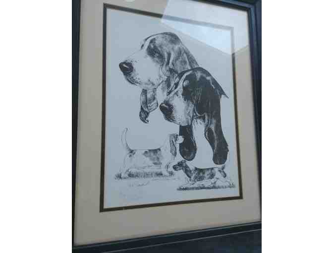 Lynn St. Clair Stubbs Line Drawing Basset Hound Head, Stacked and Moving - Signed & Number