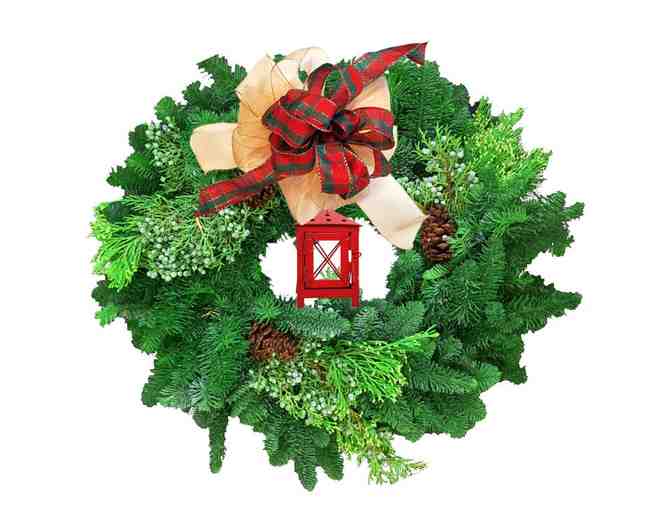 The 2020 wreath features mixed greens, pinecones and is decorated with a beautiful double bow of gold and holiday plaid ribbon. Hanging from the center is a perfectly sized bright red lantern that can support an electric tea light (not included). The Lakewood Historical Society’s Women’s Board has been creating holiday wreaths for over 25 years.