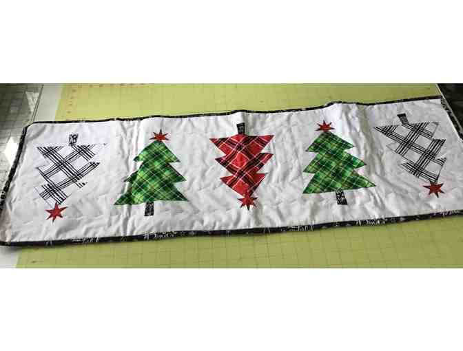 Bring some Christmas cheer to your holiday table with this quilted table runner featuring a Christmas tree design. Measures 38" by 12.5" - 100% cotton. Wash in cold water.