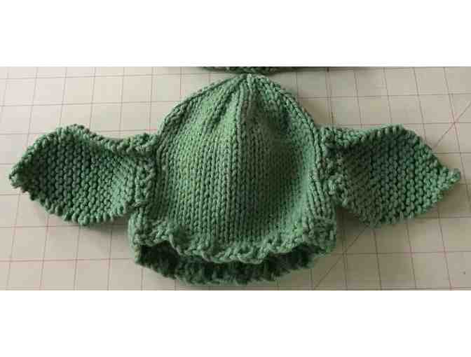 Is the force strong with your little one? Keep them warm and cozy with this hand-knit baby yoda hat! Baby sized: 18" brim. Machine washable and dryer safe.