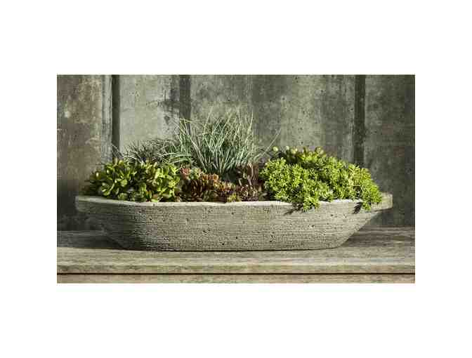 Enjoy a 20" x 17" patio pot of assorted drought tolerant, sun-loving succulents! This offering from Ream Design LLC is very low maintenance for a very high return of enjoyment. The pot will be light gray cast stone.Your patio pot will be happy outdoors in warm weather, and will easily be brought indoors to enjoy over the winter. Image here is not the exact pot to be created but is an example of a succulent patio pot.
