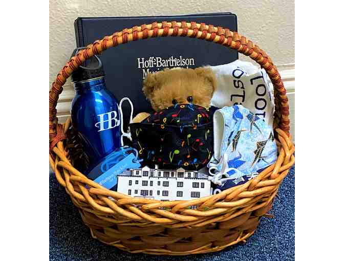 HB merch for your favorite musician! Basket includes: one child size mask with music notes, one adult size mask with origami cranes, one T-shirt, re-usable bag, binder, magnet, mug, water bottle, teddy bear and luggage tag. (Additional sizes available for T-shirt).