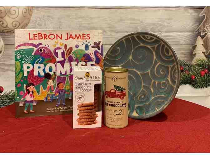 Serve up your story with Cookies and Milk, while creating a college-going culture in your house with this "Tell me a Story" package. Basket includes "I Promise" by LeBron James, a $15 gift certificate to Quixotic Bakery and handcrafted plate by North Carolina potter, Julie Covington.