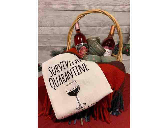 Basket includes four (4) handcrafted pottery wine glasses by potter Julie Covington of the western North Carolina arts region (value: $30/glass);