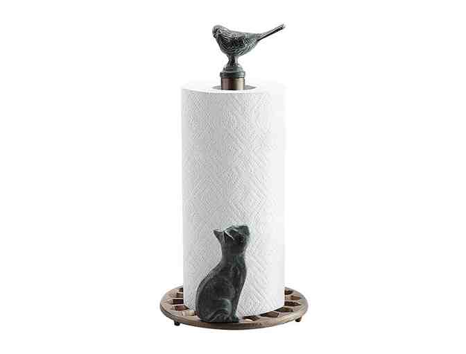 This bird knows it's out of reach, but the cat is ever hopeful. This little drama plays out whenever you reach for a paper towel.
