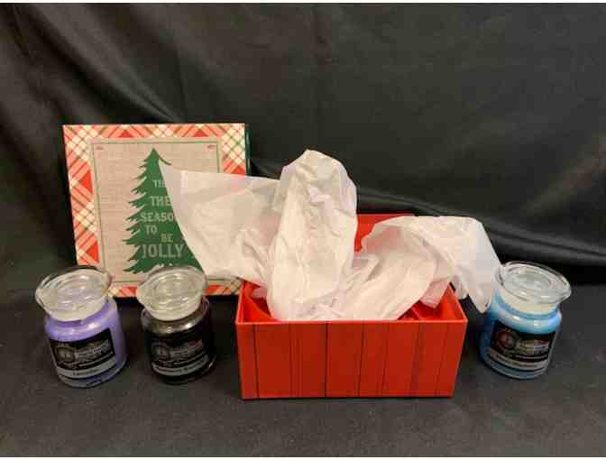 A thoughtful gift that lasts beyond the holidays!  Enjoy three small jar candles made by Pilgrim Candle Company in lavender, blackberry bramble, and Maine blueberry scents.  Each is 4.7 oz. Comes in a gift box.
