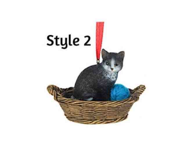 Measuring 2.25" x 2.25" x 2.25", this ornament will make you smile. Made of resin and hangs on a string.