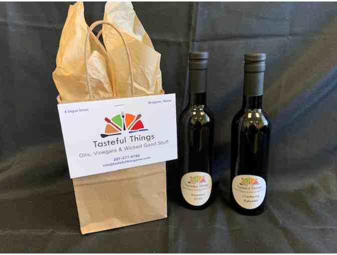 For anyone who loves to cook, enjoy a bottle of gourmet rosemary extra virgin olive oil as well as one of cranberry balsamic vinegar. A tasteful way to liven up your favorite dishes!