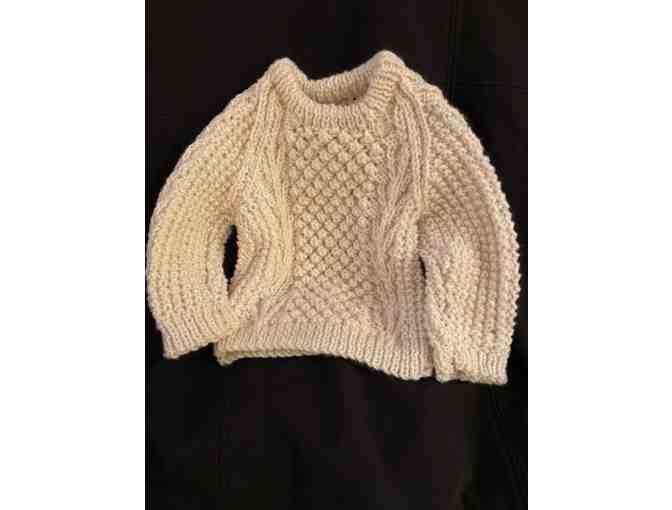 Check out this beautiful, hand-made white sweater, sized for a 1-year old (approximate). The details are exquisite, and described below...