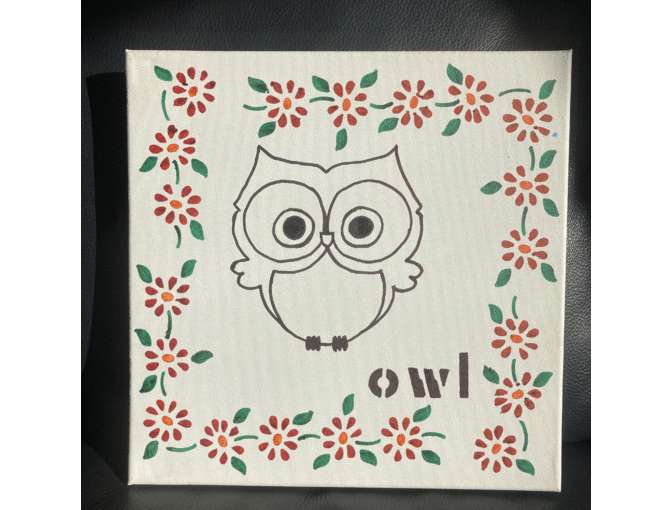 Created by 7th grade Miakota Toy, this cute 12X12 is ink on canvas of an Owl