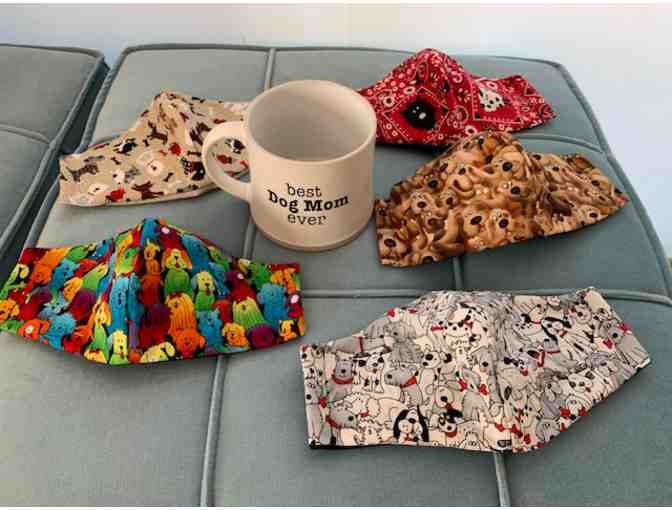 Best Dog Mom mug and 5 handmade face masks with dog deisgns.