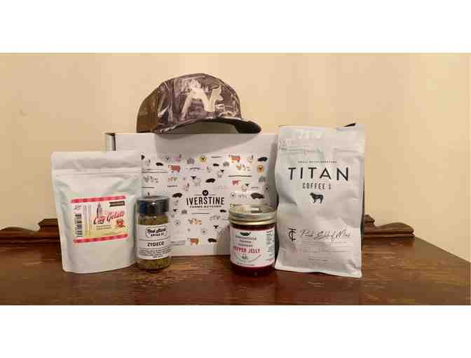 The Louisiana Farm Bureau Federation is proud to provide a host of delicious Louisiana products. Enjoy a 12 ounce bag of "Parish State of Mind" whole bean coffee from Small Batch Roasters Titan Coffee Co with flavor notes of buttered toast, bittersweet chocolate and vanilla that is velvety and intense. Sip a cup of hand-crafted, Italian delight City Gelato hot cocoa. Spice things up with some Ponchatoula Pepper Company Pepper Jelly or the Red Stick Spice Co Zydeco spice blend that will give all your meats and seafoods some attitude! This gift box is "capped" off with an Iverstine Farms Butcher logo hat in Realtree camouflage.